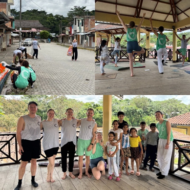Aloitimme lauantai-aamupäivän sillä, että kävimme keräämässä roskia Moyobamban kaupungilta sekä joenvarrelta, jossa oli edellisenä iltana ollut juhlat. Tämän jälkeen jatkoimme meidän joogaopetuksen mainostamista kaduilla. Meillä oli mukaansatempaavaa musiikkia ja sen lomassa huusimme ”yoga para niños”. Saimme kokoon kivan ryhmän eri-ikäisiä lapsia. Oli aivan ihanaa pitää joogatuntia näille hurmaaville lapsille.