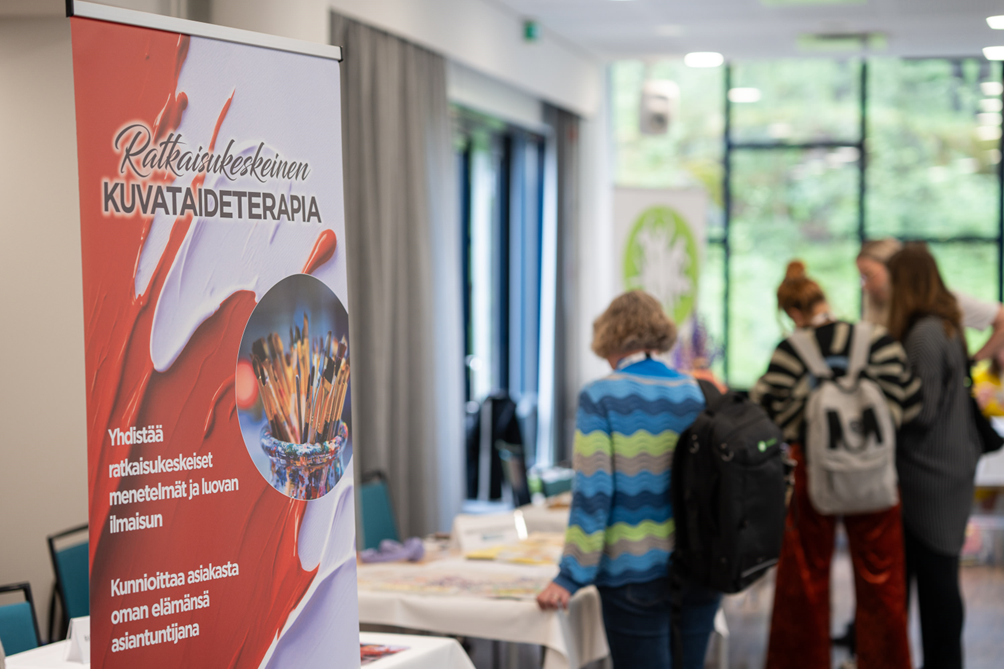 Näin vuoden lopussa on hyvä aika kääntää vielä katse menneeseen vuoteen ja nostaa sieltä esille upeita hetkiä taideterapian saralla. Minulla oli hieno mahdollisuus olla mukana Turussa 12-14.6.2025 järjestetyssä Kokonaisia kohtaamisia – Keho psykoterapioissa ja taideterapioissa -kongressissa edustamassa yhdistystämme ständillä, kertomassa menetelmästä ja verkostoitumassa taideterapeuttien ja psykoterapeuttien kanssa. Samalla pääsin kuuntelemaan kiinnostavia luentoja ja työpajoja, joista ammentaa yhdistyksellemme ja omaan ajatteluun sekä työhön.