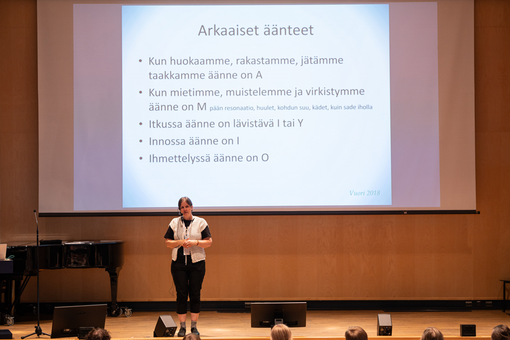 Luennot olivat myös hauskoja ja osallistavia, kuten Hilkka-Liisa Vuoren, Hilun luento laulun ja äänen soimisesta kehon eri osissa. Olisin voinut vain jäädä luentosaliin istumaan pidemmäksikin aikaa ja kuuntelemaan sekä aistimaan upeaa tunnelmaa ja tallentamaan mieleeni kiinnostavia uusia asioita.