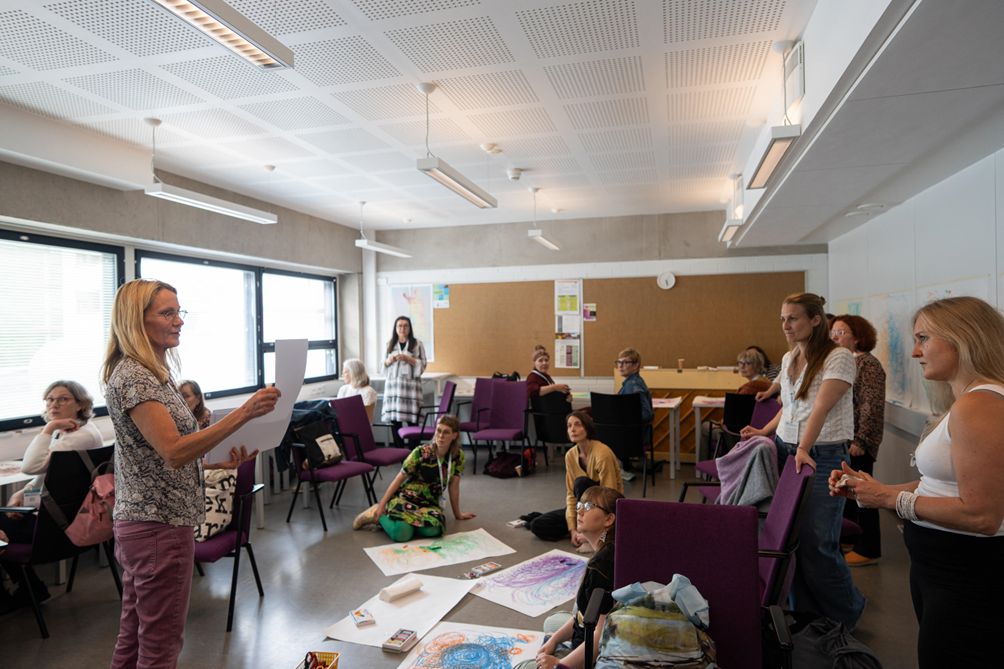 Päivän päätteeksi pääsin vielä osallistumaan Anna Wilhelmuksen Sensomotorinen lähestymistapa kuvataideterapiaan -työpajaan. Työpajassa piirsimme silmät suljettuina isolle paperille laajoja liikkeistä liiduilla. Tämä oli hyvä tapa päättää täyteläinen ja intensiivinen päivä. Ilta olisi jatkunut vielä virallisilla avajaisilla ja kongressi jatkunut vielä kaksi kiinnostavaa päivää. Seuraavan kerran kongressi järjestetään kesäkuussa vuonna 2027. Suosittelen osallistumaan!